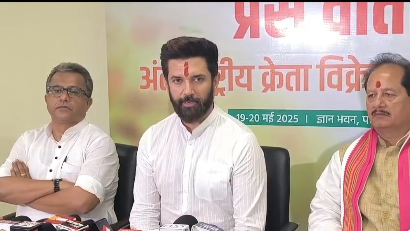 पटना: बिहार के उद्यमियों को राष्ट्रीय और अंतर्राष्ट्रीय बाजारों से जोड़ने के उद्देश्य से आयोजित दो दिवसीय अंतर्राष्ट्रीय क्रेता विक्रेता सम्मेलन के समापन के बाद आज एक प्रेस कॉन्फ्रेंस का आयोजन किया गया। इस अवसर पर केंद्रीय मंत्री चिराग पासवान, उपमुख्यमंत्री विजय सिन्हा और बिहार सरकार के मंत्री नीतीश मिश्रा उपस्थित थे।