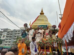 भगवान श्रीजगन्नाथ, श्री बलभद्र और माता सुभद्रा की अलंकृत प्रतिमाएं एक भव्य रथ पर विराजमान थीं, जिसे श्रद्धा और उल्लास के साथ इस्कॉन मंदिर परिसर से रवाना किया गया। यह शोभायात्रा बुद्ध मार्ग, तारामंडल, इनकम टैक्स गोलंबर, बेली रोड से होते हुए बिहार म्यूजियम तक पहुंची. वहां से यू-टर्न लेकर विमेंस कॉलेज, स्कूल नंबर, कोतवाली, डाकबंगला चौराहा और मौर्यलोक कॉम्प्लेक्स होते हुए वापस इस्कॉन मंदिर लौट आई। इस साल की रथ यात्रा में देश-विदेश से आए श्रद्धालुओं की रिकॉर्ड तोड़ उपस्थिति देखने को मिली। इस्कॉन रथ यात्रा समिति के अध्यक्ष राम मनोहर दास ने बताया कि मायापुर धाम से एक विशेष श्रद्धालु दल इस यात्रा में शामिल हुआ, जिससे इसकी दिव्यता और बढ़ गई। इतना ही नहीं, इंग्लैंड और नाइजीरिया से भी कीर्तन मंडली के सदस्य विशेष रूप से पटना पहुंचे थे, जिन्होंने अपने भक्तिपूर्ण गीतों और हरिनाम संकीर्तन से पूरे वातावरण को मंत्रमुग्ध कर दिया। “हरे कृष्ण-हरे राम” के उद्घोष से पूरा शहर गूंज उठा, और भक्त नाचते-गाते हुए रथ को खींच रहे थे. मानो स्वयं भगवान उनके बीच चल रहे हों.